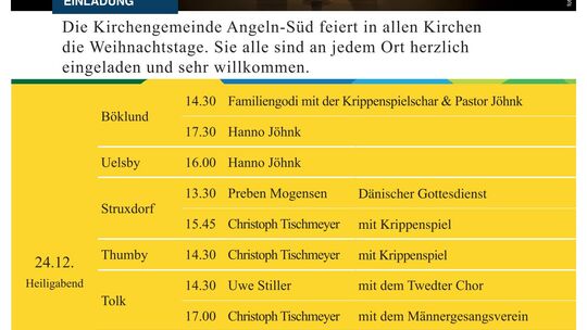 Lesen Sie mehrSieben ehemalige Kirchengemeinden, zehn wunderschöne und alte Kirchen und ungefähr 6000 Gemeindemitglieder – das ist die Kirchengemeinde Angeln-Süd!