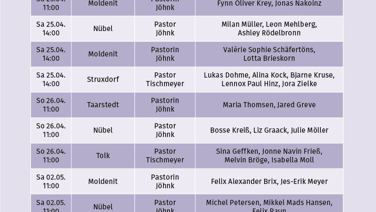 Einladung zu den Konfirmationen in unserer Kirchengemeinde