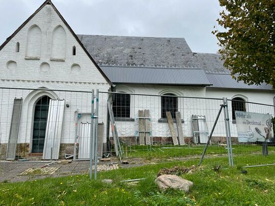 Nach den letzten Zügen der Voruntersuchungen und statischen Begutachtungen im August und September ist seit Mitte Oktober ist unserer Kirche eingerüstet. Nach Tagen des Regens haben seit dem 2. November 2021 die Handwerker mit ihren Arbeiten begonnen. Mit Kaffee und Apfelkuchen sind sie herzlich willkommen geheißen worden. Seitdem befestigen und mauern sie die Mauerkrone auf. Dabei wurde der Rundbogen eines alten zugemauerten Fensters gefunden. Möglicherweise stammt der aus der Anfangszeit unserer Kirche. Auch das Material mit dem der entstandene Hohlraum nur teilweise aufgefüllt gefunden wurde ist möglicherweise von bauhistorischer Bedeutung. Es bleibt spannend. Aber es geht voran. Auch im Winter an den trockenen und milden Tagen.