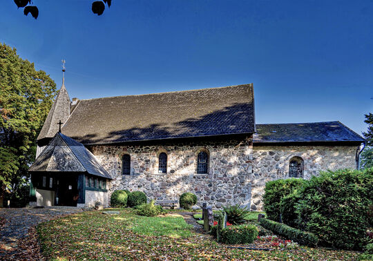 Das romanische Kirchenschiff mit seinen z. T. 1, 30 m dicken Mauern gibt noch einen guten Eindruck vom Kirchbau der damaligen Zeit. Angebaut ist der Turm, der erstmals 1568 erwähnt wird und in der derzeitigen Konstruktion von 1772 stammt.