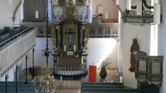 Wir Grundhofer waren immer besonders stolz auf unsere Kirche, die – natürlich ganz objektiv – die Schönste im Lande ist. So stolz sind wir, dass ein gewisser Hang zum Angeben nicht ganz zu verleugnen ist. Immerhin gibt es viele Superlative mit denen wir unsere Kirche schildern. So ist sie von den alten Dorfkirchen Angelns eindeutig die größte. Ihre vorzügliche Orgel sucht weit und breit Ihresgleichen und die Bilderbibel des Itzehoer Malers Ludwig Müllers verfügt über ganze 65 Bildtafeln. Das soll uns erst einmal einer nachmachen! Bis ein nutzloses Gewitter den Kirchturm niederriss besaß sie mit 63 m den höchsten Turm Angelns. Davon ist allerdings schon seit langem nichts mehr zu sehen. Dagegen steht die mächtige Friedhofsmauer noch heute. In einen ihrer Steine wurde die Jahreszahl 1514 eingeritzt. 240 m ist die breite Wehrmauer lang, und gilt damit als die größte Schleswig-Holsteins.