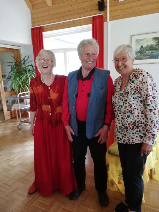 Hilde las eine Geschichte vor: "Ein neuer Hut!". Verwöhnt wurde die Runde mit Kaffe und Kuchen, der von Hilde mit viel Freude gebacken wurde. Für ein wenig Bewegung und mit viel Begeisterung wurde dann ein Sitztanz zur Melodie "Tulpen aus Amsterdam" getanzt.