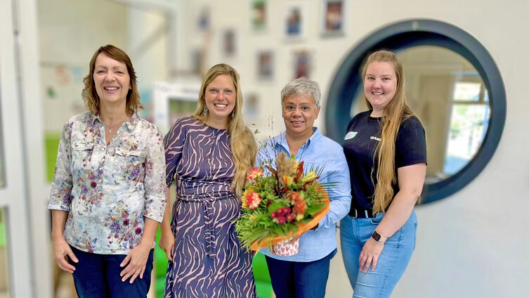 Im Anschluss an die Begrüßung blieb Zeit, sich über den Ablauf der Einarbeitung im Kitawerk sowie über zukünftige Ideen zur Zusammenarbeit mit der Kirchengemeinde auszutauschen. Besonders wichtig war Sandra, dass ihre Stellvertretung Victoria mit auf dem Begrüßungsfoto steht – ein klares Zeichen für Teamgeist und gelebten Zusammenhalt.