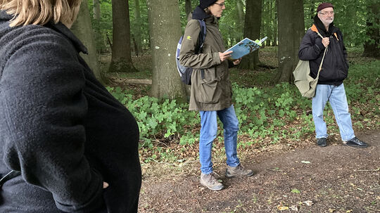 Den Rahmen gestaltete die Ehrenamtsgruppe der Erwachsenenbildung im Kirchenkreis Schleswig-Flensburg. So berichtete Detlef Flüh von seinen Begegnungen mit der Natur in diesem Wald und steckte alle mit seiner Begeisterung an. Mareike Brombacher las an einigen Stationen aus dem Buch „Hörst du, wie die Bäume sprechen“ von Peter Wohlleben vor. Heike Kaiser hatte die Anmeldungen organisiert. Beim kleinen Imbiss am Ende des Spaziergangs war man sich einig: Die Erfahrung, im Wald etwas über den Wald zu erfahren, war ein ganz besonderes Erlebnis. Und die Organisator*innen sind sich sicher: Einen solchen Spaziergang werden sie gerne wieder anbieten.