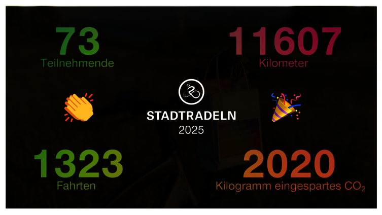 Strecken zwischen 5-10 km legen Pendler*innen sonst zu 64 % mit dem Auto zurück. (Statistisches Bundesamt 2024) Wer für diese Kurzstrecken das Rad nimmt, spart aktiv CO2 ein. Die Stadtradler*innen aus dem Kirchenkreis haben zusammen 2020 Kilogramm CO2 vermieden. (https://www.fahrradfreundlicher-arbeitgeber.de/informationen/co2-rechner/).
