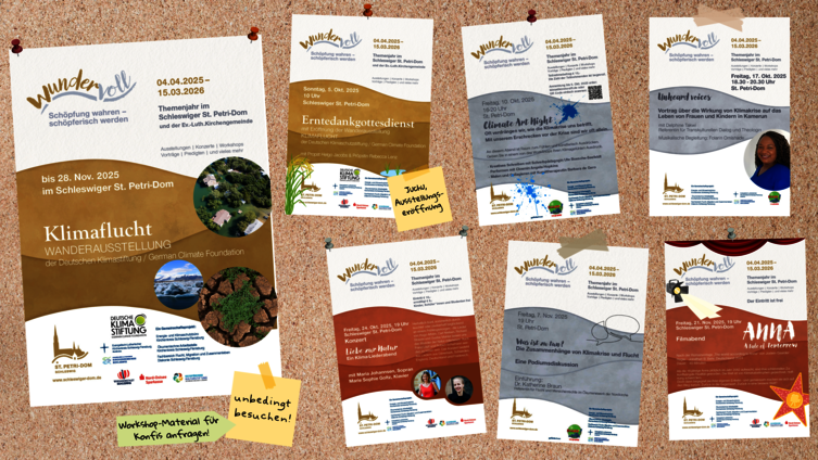 Im Rahmen des Themenjahrs "wundervoll: Schöpfung wahren, schöpferisch werden" ist im Oktober und November die Wanderausstellung KLIMAFLUCHT der Deutschen Klimastiftung im Schleswiger Dom zu sehen. Ergänzt wird die Ausstellung durch ein Modul zur Ostsee-Sturmflut 2023 in Schleswig sowie durch ein vielfältiges Rahmenprogramm, das verschiedene Arbeitsbereiche des Kirchenkreises gemeinschaftlich organisiert haben.