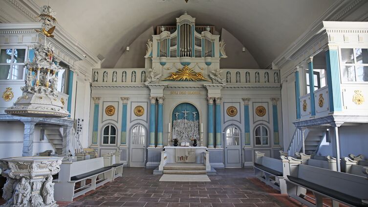 10:45 Uhr: Kirchenführung mit G. Fürstenberg - Auch der hölzerne Glockenturm von 1729 kann im Rahmen der Führung besichtigt werden.