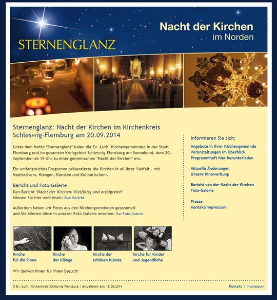 Sternenglanz: Nacht der Kirchen im Kirchenkreis Schleswig-Flensburg am 20.09.2014